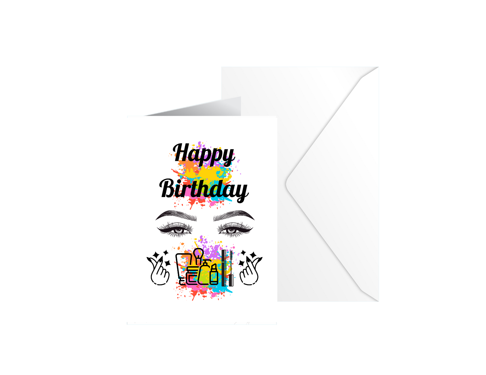 Celebrate with colorful style! Our Happy Birthday card features vibrant splats of color, accented with make up tools, eyes, and hands. Perfect for any age or gender, this card is sure to brighten anyone's special day. Made with high-quality materials for a lasting impression.