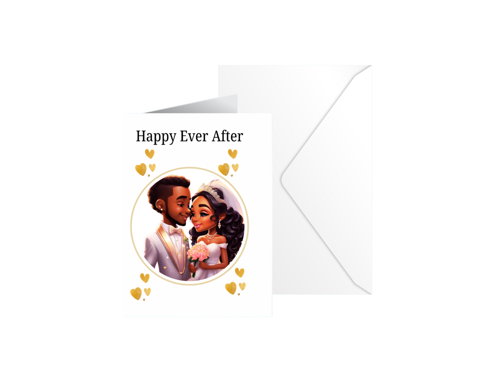 This elegant wedding card features a delicate flower garland on a pink background with the timeless message of 'Happy Ever After.' Perfect for celebrating the special bond of a newly married couple. Share your heartfelt congratulations with this beautiful card.